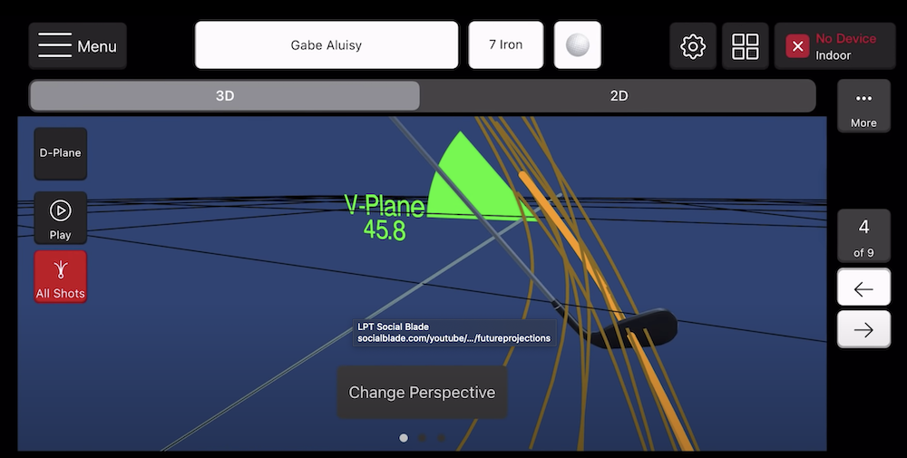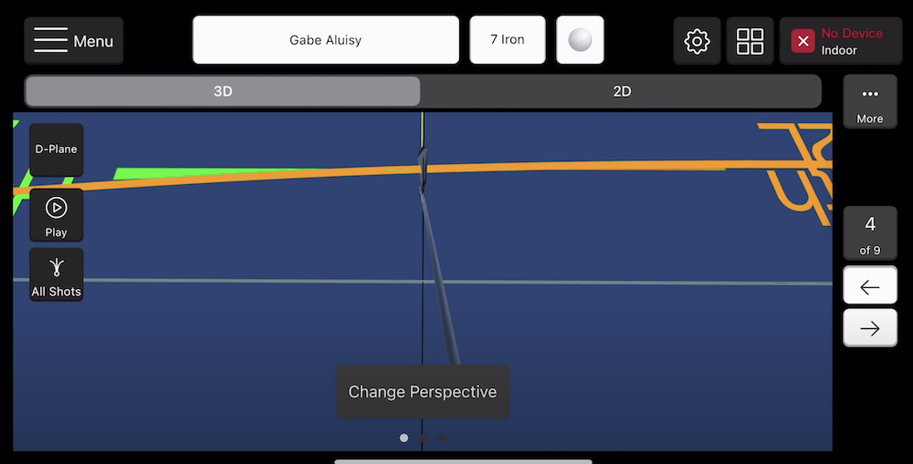 The Mevo Plus upgrade now includes both 3 dimensional and 2 dimensional views your shots. Essentially for every swing you take, it builds a 3 dimensional model like this image below.